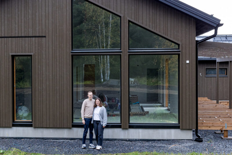 Eveliina Jussila ja Lassi Kirjavainen lähtivät lopulta rakennusprojektiin, sillä valmista ja kaikki toiveet täyttävää omakotitaloa ei löytynyt. Yksiössä vietettyjen vuosien jälkeen pariskunnan omiin tarpeisiin suunniteltu koti tuntuu merkitykselliseltä.