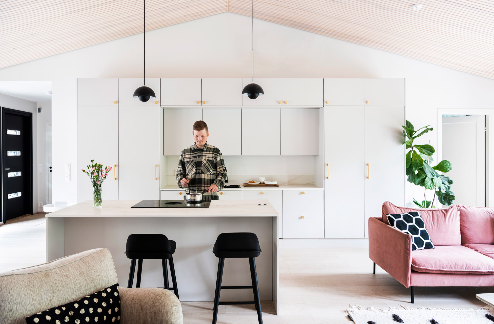 – Olimme sopineet Kannustalon kanssa, että talossamme järjestetään talonäyttö marraskuussa. Se oli hyvä deadline, silloin tuli tehtyä viimeistelytkin huolella. Kaikki tuli valmiiksi, eikä mikään jäänyt roikkumaan. Väsymys iski vasta, kun muutimme uuteen kotiin jouluksi 2021. Sisäänmuuttohetkellä olimme jo antaneet kaikkemme. Muuttolaatikoita löytyi nurkista jonkin aikaa. Varsinaisen projektin hoidimme tosi tehokkaasti. Olen siitä edelleen ylpeä, kertoo Matias.