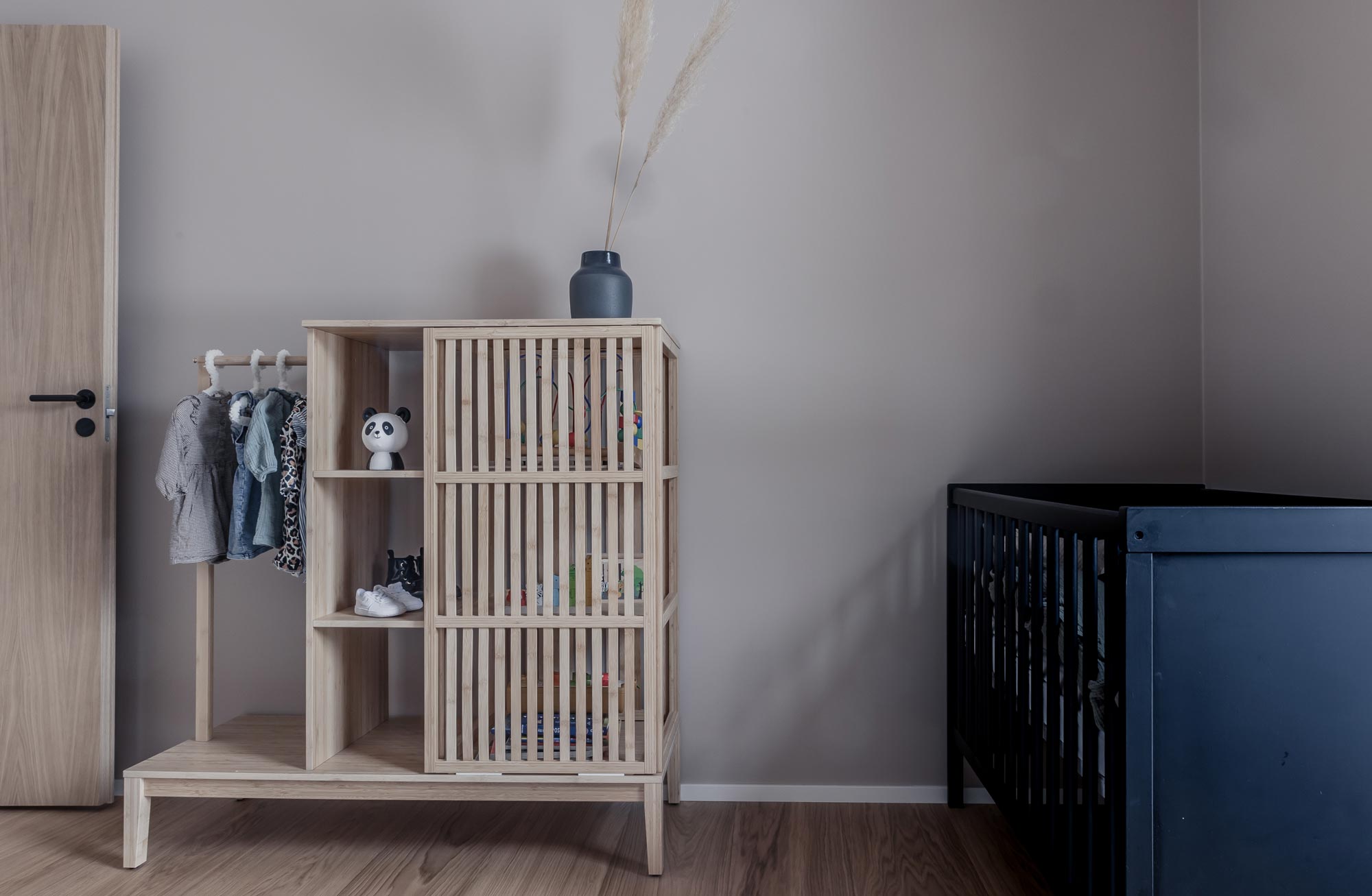 Jokainen ratkaisu ja materiaali on tarkoin mietitty ja toteutettu, jonka ansiosta kokonaisuus säilyy yhtenäisenä aina sisääntulosta kodin perältä löytyvään makuuhuoneeseen asti. Kodin lattia on Bjelinin kovapuulattiaa, joka on asennettu kelluvana. Lattiamateriaali on kestänyt hyvin kaikki kolhut lemmikki- ja lapsiperheessä. Koska lattia toteutettiin taidokkaan kynnyksettömästi, tammiset väliovet muodostavat lattian kanssa silmää hivelevän kokonaisuuden.