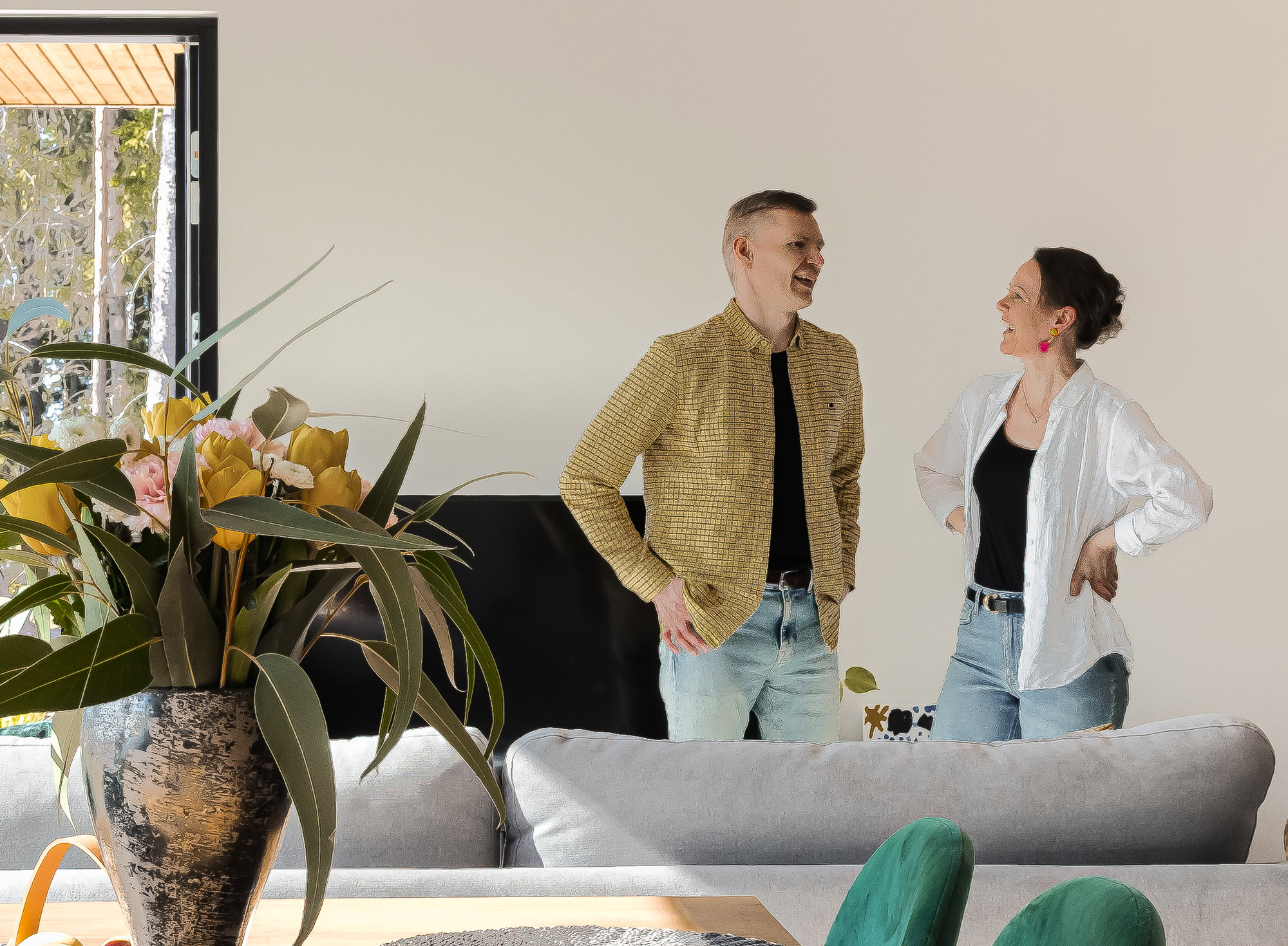 – Olemme molemmat visuaalisia ja kiinnitämme huomiota yksityiskohtiin. Minä suunnittelin pintamateriaaleja enemmän. Mutta meillä on hyvin yhteneväinen maku ja kaikki päätökset tehtiin yhdessä, Satumaija kertoo.