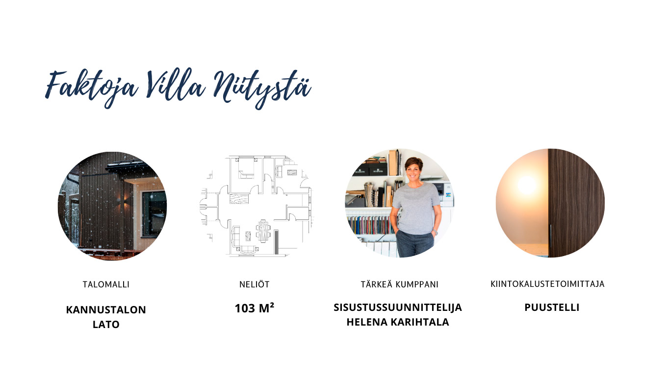 Sisustussuunnittelija Helena Karihtala on suunnitellut Villa Niittyyn kohteen tyyliä tukevan messusisustuksen ja -stailauksen.