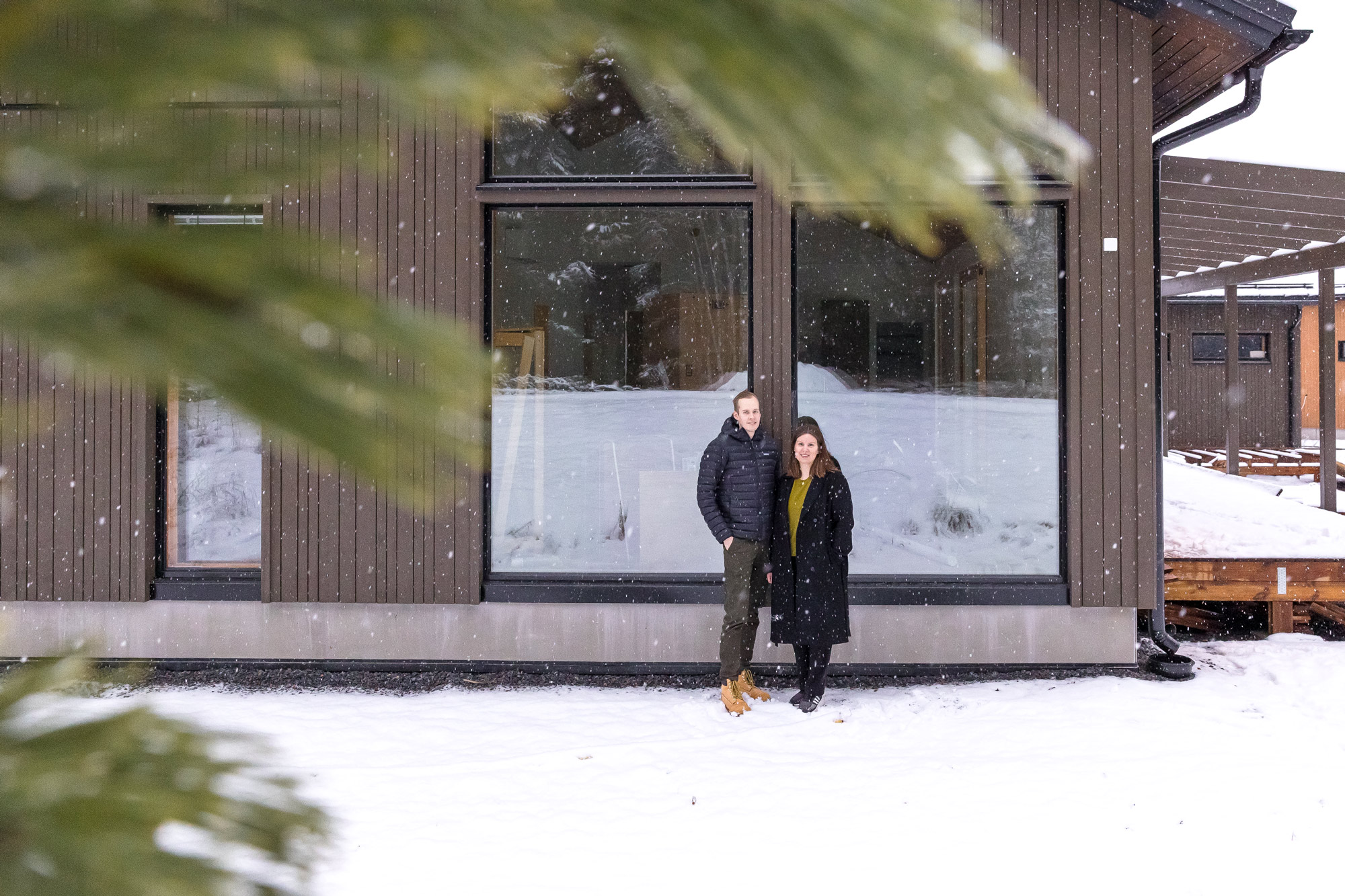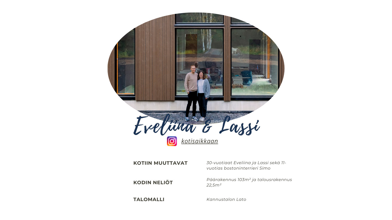 Eveliina Jussila ja Lassi Kirjavainen lähtivät lopulta rakennusprojektiin, sillä valmista ja kaikki toiveet täyttävää omakotitaloa ei löytynyt. Yksiössä vietettyjen vuosien jälkeen pariskunnan omiin tarpeisiin suunniteltu koti tuntuu merkitykselliseltä.
