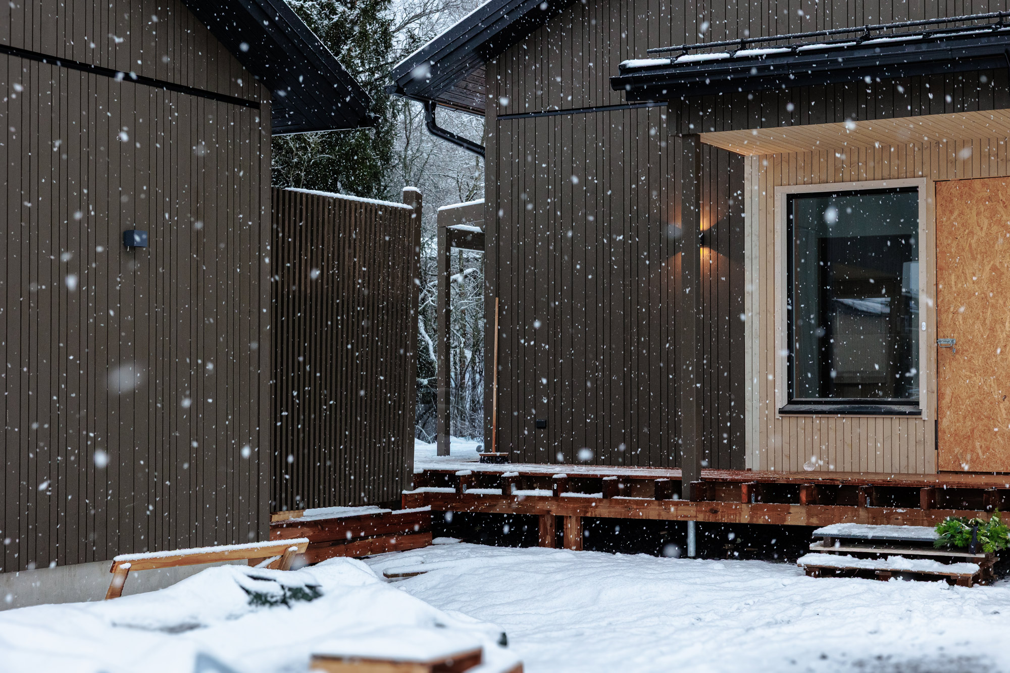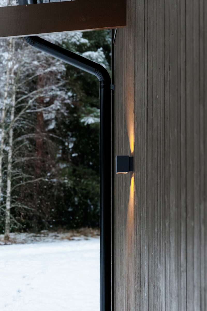 Oleskelutilojen kattoon valikoitui Botnia Panelsin tammi-rimapaneelia. Ikkunat, Tiivi.