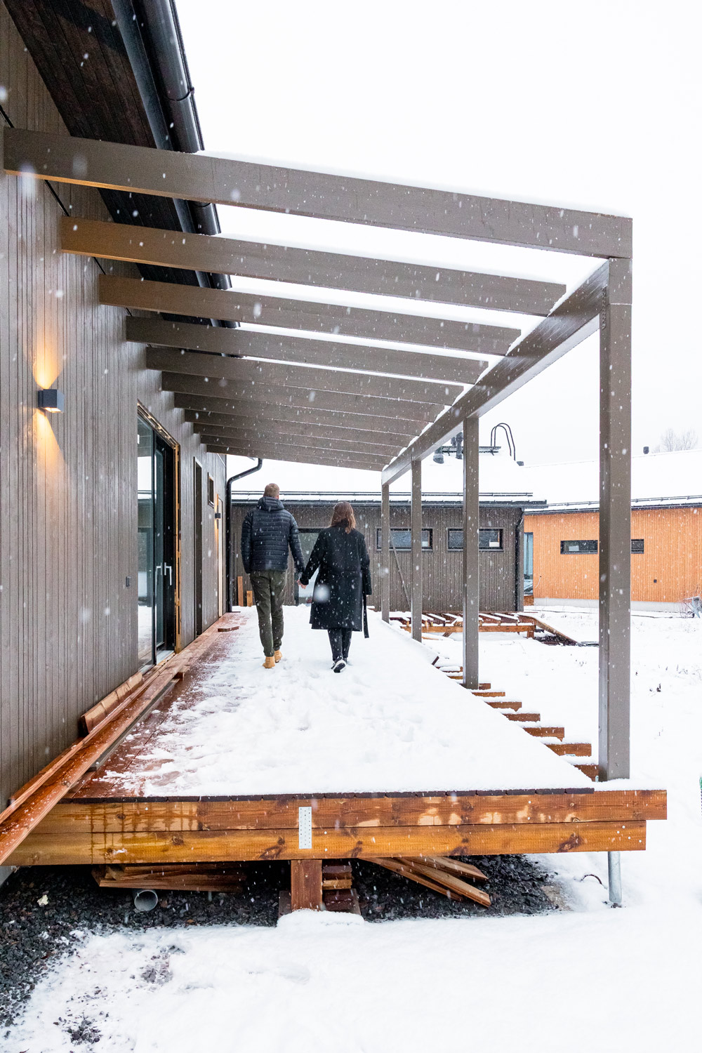 Kohti tulevaa kotia kävellessään Eveliina ihailee ääneen, miten ihanasti tontille paistaa ilta-aurinko. Matkalla moikataan tulevia naapureita ja oman kadun rakentajat ovatkin alkaneet tulla jo hyvin tutuiksi. Mutta tuntuuko uudessa talossa käydessä jo kotoisalta?