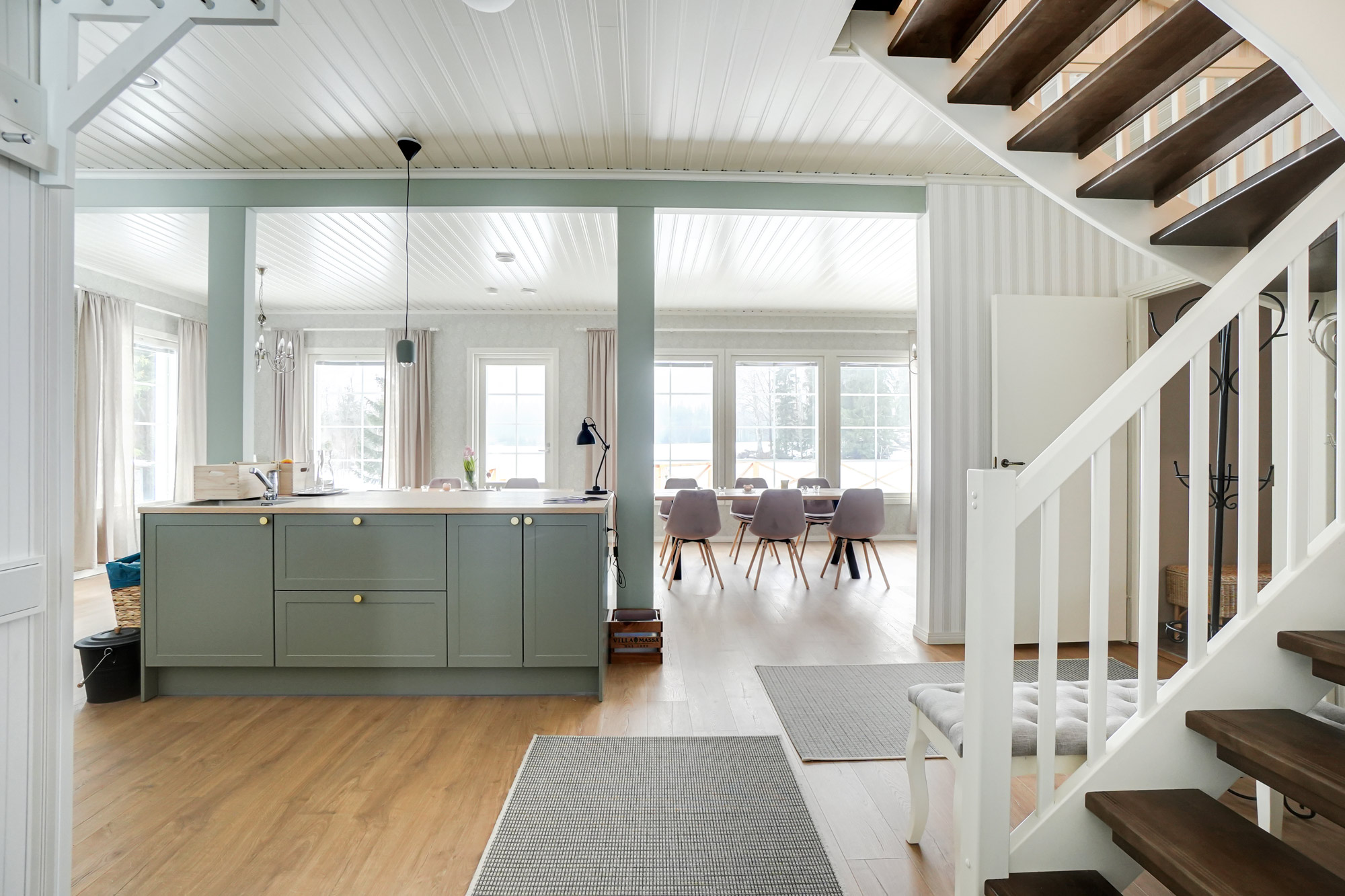 – Meillä oli selkeä visio siitä, että rakentaisimme kaksikerroksisen talon, jossa majoitustilat olisivat yläkerrassa ja iso avokeittiö ja neuvottelutilat alakerrassa. Tutustuimme useamman talovalmistajan mallistoihin ja tapasimme heidän talomyyjiään. Meille oli tärkeää, että talovalmistaja on luotettava yritys, jolla on pitkä historia. Kannustalon referenssit ja lukemamme rakentajatarinat tekivät meihin vaikutuksen. Kannustalolla on modernit nettisivut ja hyvät kuvat kohteista. Kävimme myös Kannustalon asuntomessukohteissa, joissa rakentamisen laatu oli korkeatasoista. Asuntomessuilla näimme hyvin rakentamisen laatuerot. Emme käyneet taloesittelyissä, mutta Backaksen lähelle rakennettiin Kannustaloa, jossa kävimme katsomassa työmaan siisteyttä ja rakentamisen edistymistä. Hyvä maine ja taloudellinen luotettavuus ratkaisivat valintamme, kertoo Lauri.
