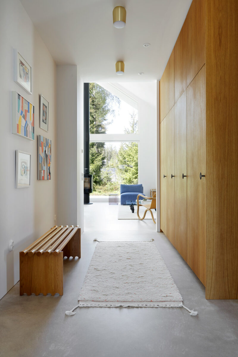 - Eteiseen sisään astuttaessa aukeaa suora, pitkä näkymä läpi talon ulos.