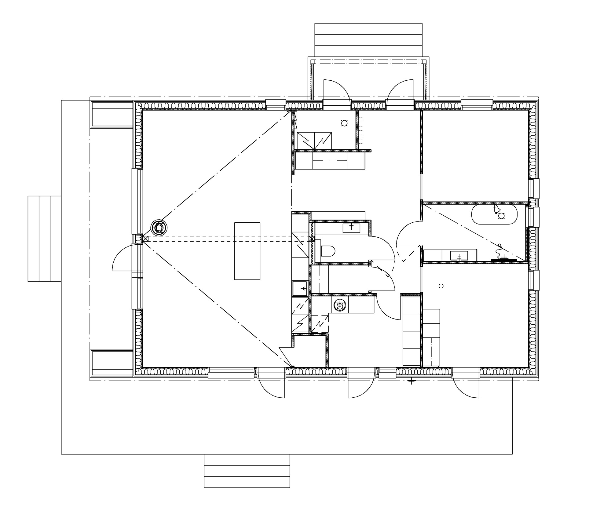 - Pihalle päätettiin rakentaa myöhemmin pihasauna, minkä vuoksi taloon sisälle ei suunniteltu saunaa.