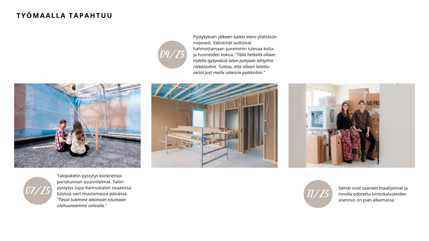 Viivin ja Matin tulevassa kodissa tehdään parhaillaan sisällä viimeistelytöitä ja Kannustalon osuus alkaa olla valmis. Tunnelmat ovat kutkuttavan odottavat ja positiivisia yllätyksiä on riittänyt rutkasti.