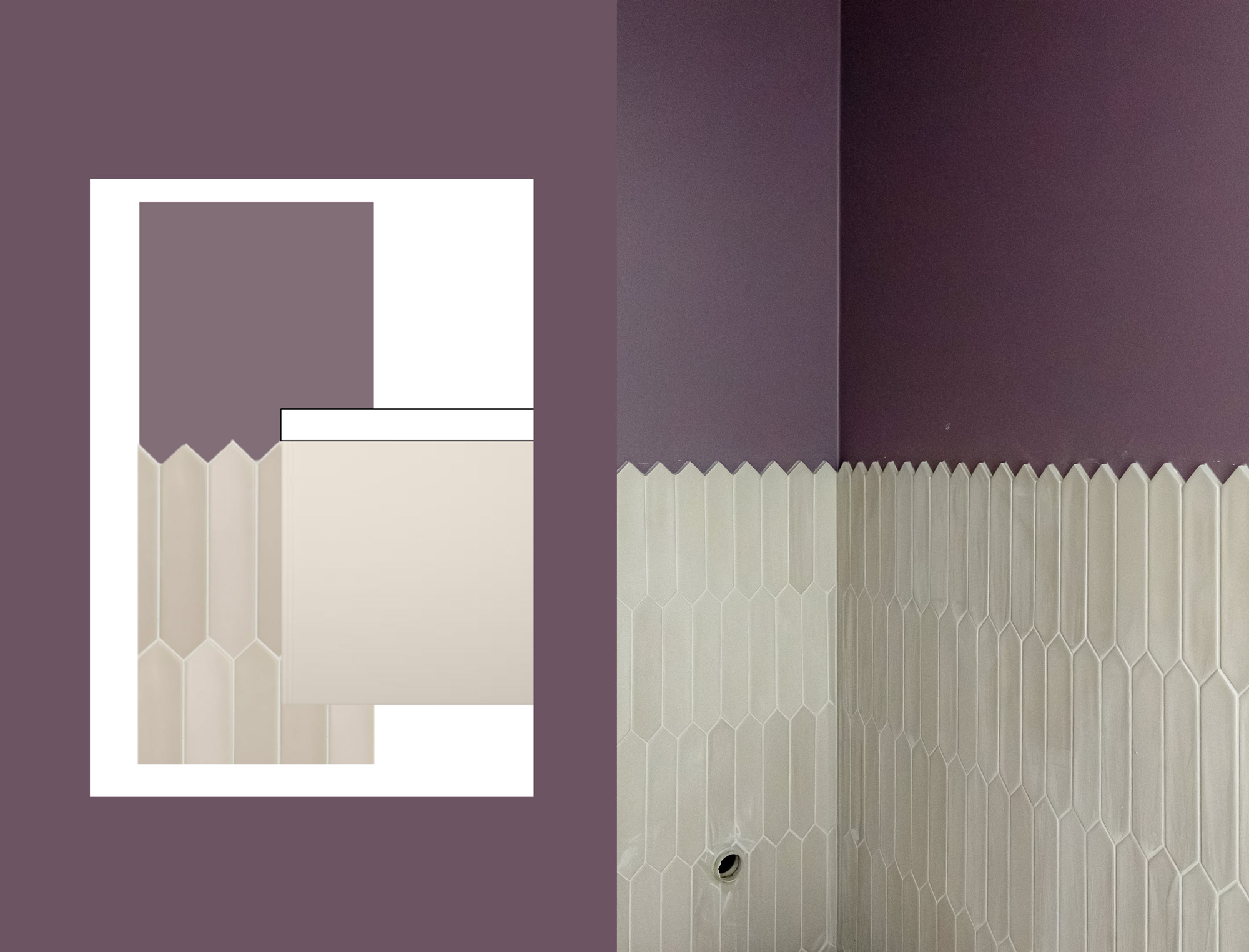 “Laatat oli tosi kivaa päästä näkemään ensimmäistä kertaa. Mun mielestä ollaan tehty värien kanssa hyviä valintoja”, Viivi kertoo. Lanse-laatan muotokieli ihastutti, joten sitä valittiin myös erilliseen wc:hen beigessä sävyssä. Seinä maalattiin maanläheisen violetilla Tikkurilan Myytillä.