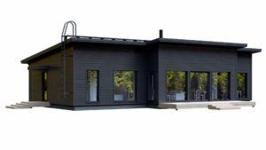 Olohuoneeseen voi lisätä oven terassille. Lisähinta sisältää myös portaan.