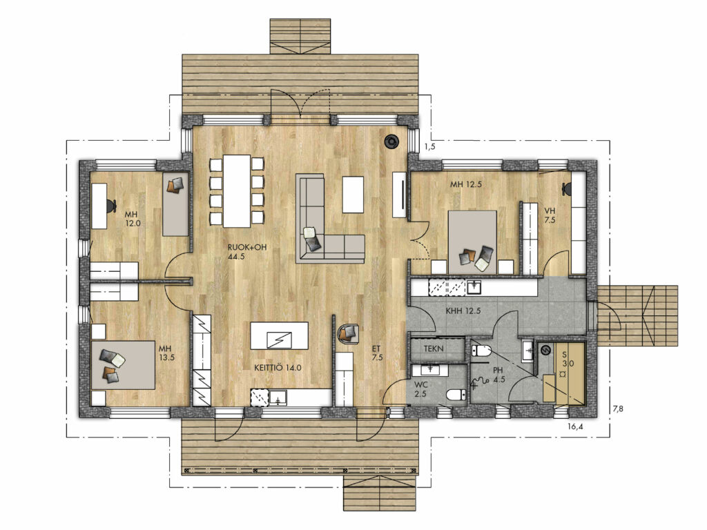 Kasvata avoterassia haluamallasi neliömäärällä, lisähinta 150 €/m2