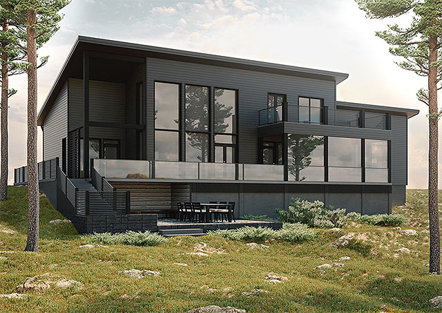 Harmaja 153 on Mikkelin asuntomessuilla esittelemämme talomalli. Kodin keskus on iso yhtenäinen tupa, jossa ruuanlaitolle, ruokailulle ja oleskelulle on omat paikkansa. Olohuoneessa on vino sisäkatto, joka nousee yli kuuden metrin korkeuteen. Yläkerran parvella on makuuhuone ja työtila.