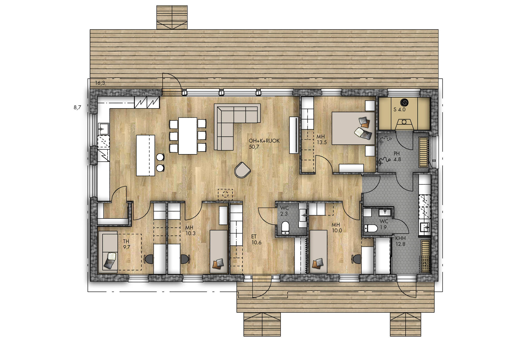 Edullinen vaihtoehto jos haluat rakentaa talosi itse valmiista elementeistä, sillä voit vaikuttaa talobudjettiin paljon omilla valinnoillasi. Ei sisällä asennusta. Asennus saatavilla erikseen. Lue lisää >>