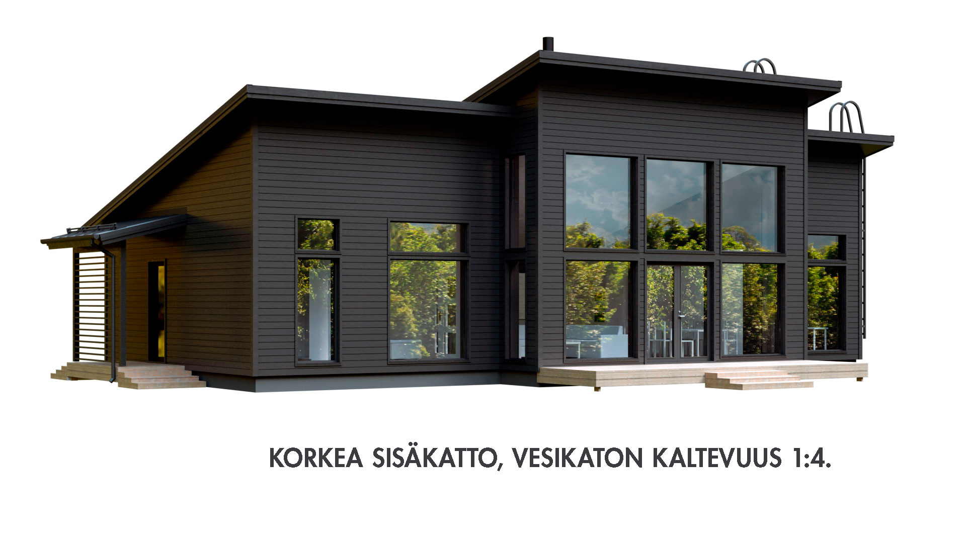 Talon keittiö-olohuoneen huonekorkeutta voi muuttaa tontin vaatimusten ja omien toiveiden mukaan. Katto voi olla suora tai nouseva. Kuvasarjassa on esitelty eri vaihtoehtoja.
