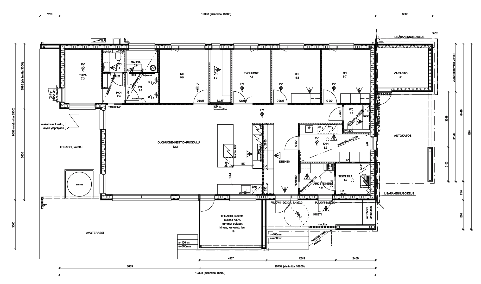Talomalli: 1-kerroksinen Harmaja / muunnos Huoneistoala: 148,0 m2 Kerrosala: 182,0 m2 Huonekorkeus: 2,8 m Toimitustapa: Sisusta itse-toimitus Esittelyvaihe: Levyvalmis Lämmitys: Vesikiertoinen lattialämmitys, maalämpöpumppu. Koneellinen ilmanvaihto lämmöntalteenotolla.