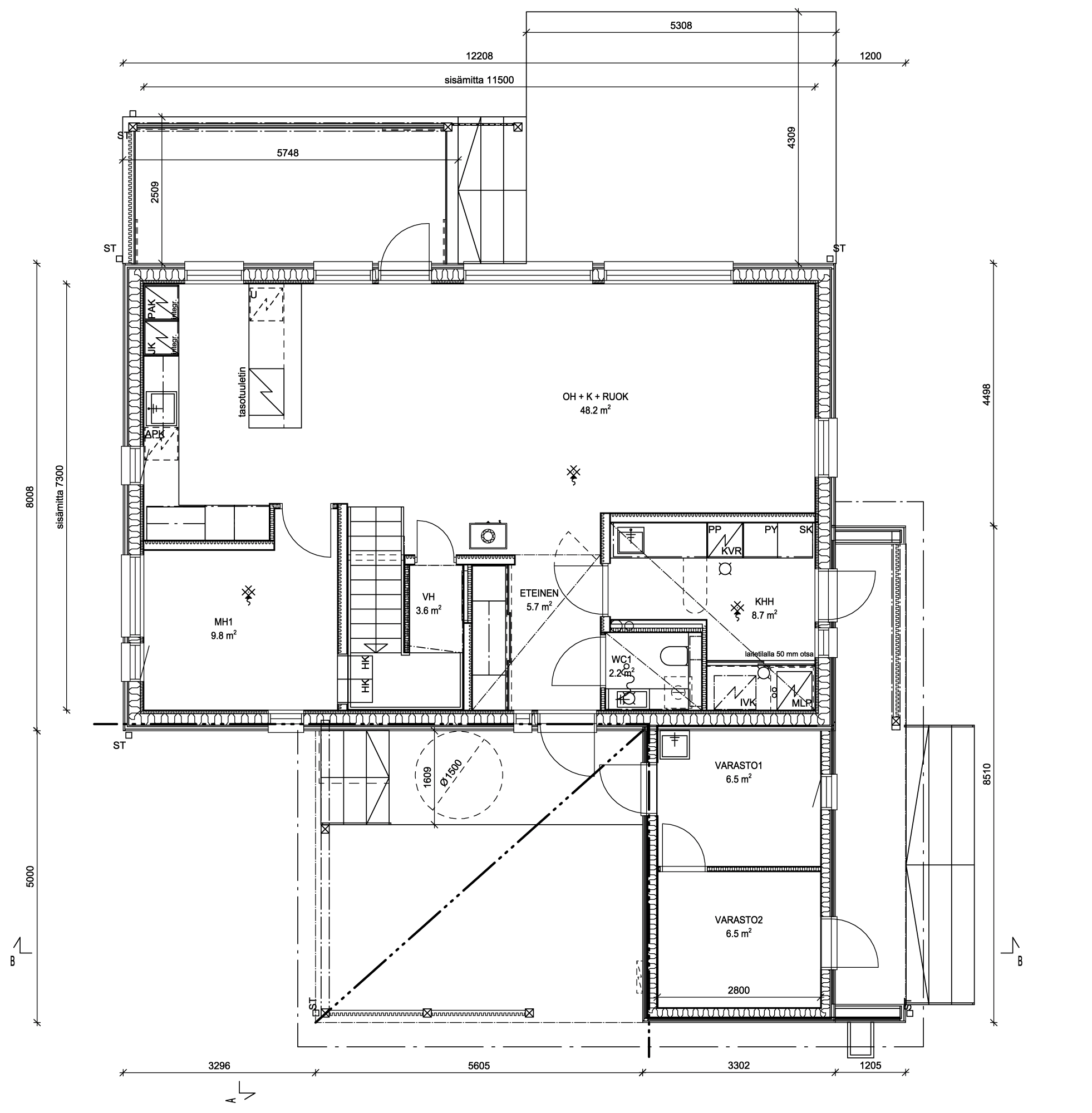 Kerrosala: 115,0 + 92,0 = 207,0 m2
