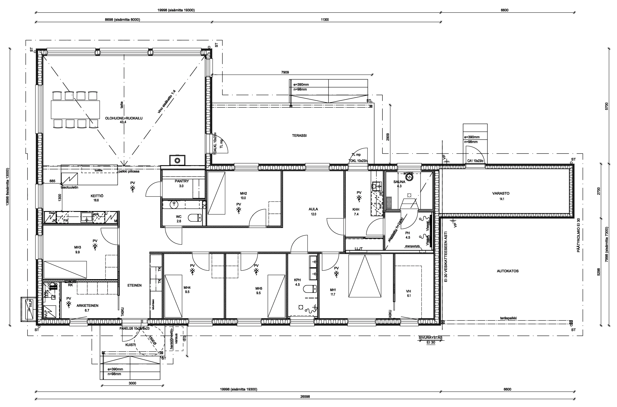Lämmitys: Vesikiertoinen lattialämmitys, ilma-vesilämpöpumppu.