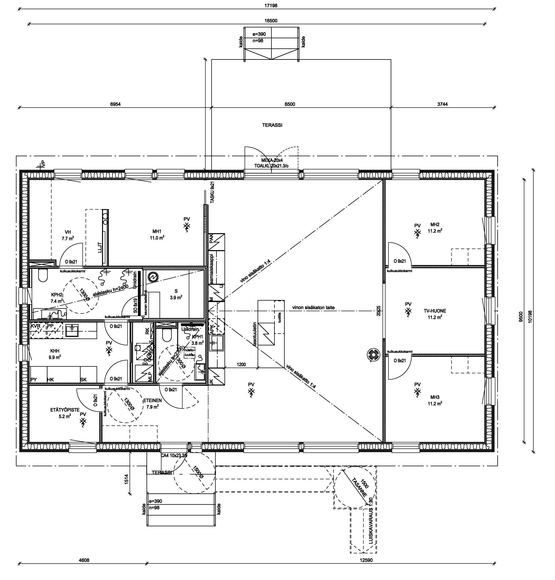 Talomalli: Lato 150 / muunnos Huoneistoala: 157,0 m2 Kerrosala: 175,0 m2 Huonekorkeus: 2,8 m Toimitustapa: Muuttovalmis-toimitus Esittelyvaihe: Levyvalmis Lämmitys: Vesikiertoinen lattialämmitys, maalämpöpumppu. Koneellinen ilmanvaihto lämmöntalteenotolla.